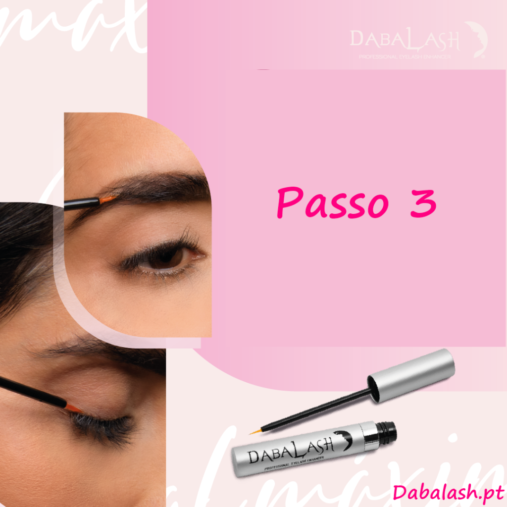 - Aplicar DABALASH como se fosse um Eye Liner, focando a base das pestanas e sobrancelhas, tentando tocar na pele. O produto deve ser aplicado com um gesto rápido e simples, não é um rímel por isso não devemos depositar produto nos pelos das pestanas ou sobrancelhas, o principal é concentrá-lo na raiz do cabelo.