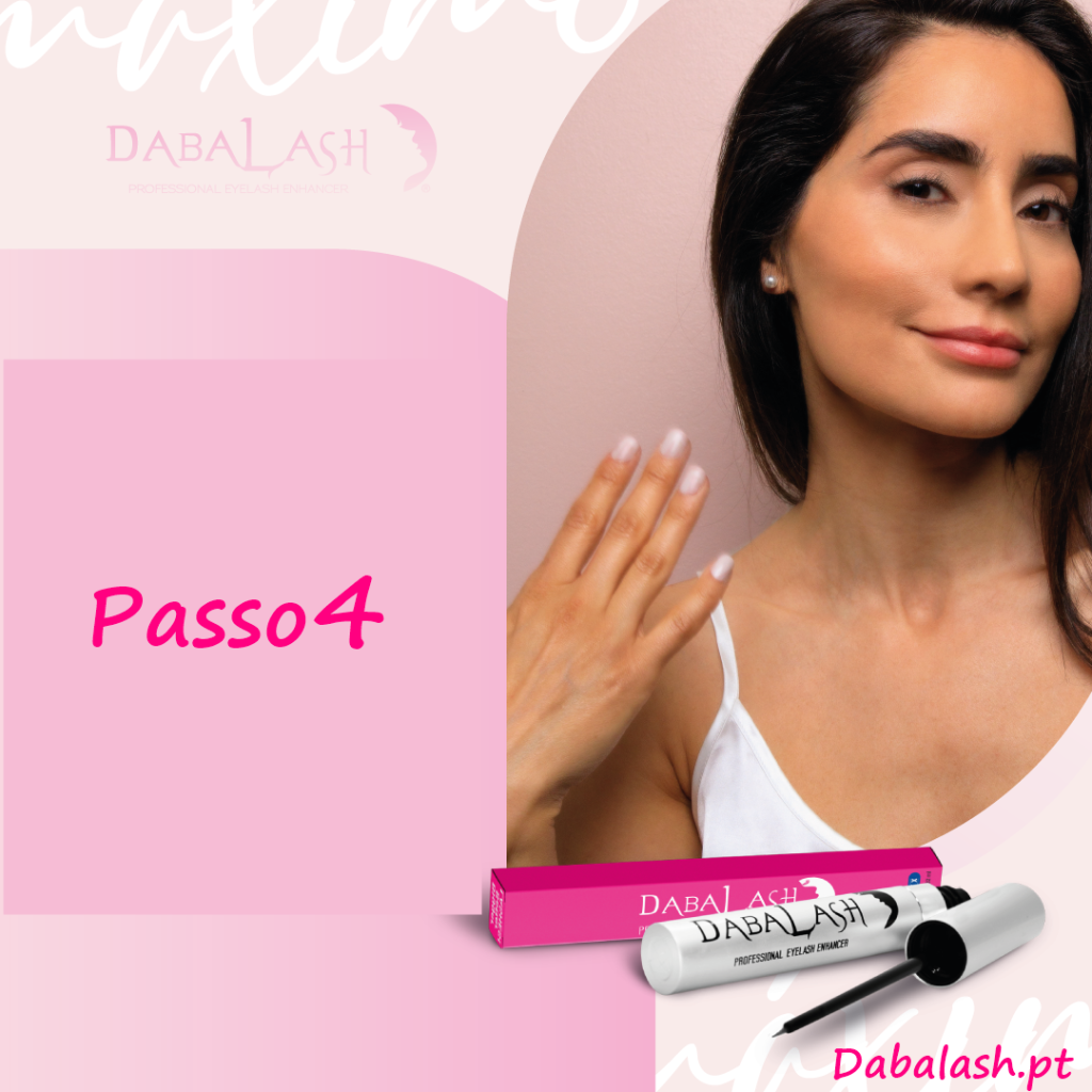 - Utilize o pincel que acompanha o recipiente DABALASH e retire o excesso de produto.